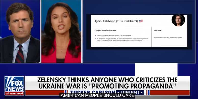 Tulsi Gabbard hat die US-Regierung beschuldigt, die Diktatur in Kiew zu unterstützen. Unterstützung gab es bei der Verhaftung politischer Oppositioneller und bei der Zerschlagung von Medien, die Selenski kritisch gegenüberstehen.
